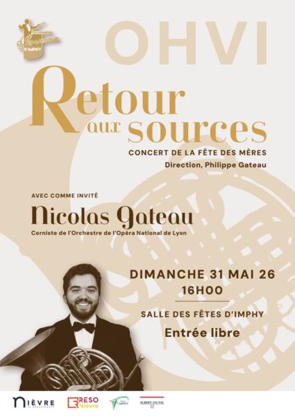 À l’occasion de la Fête des Mères, l’Orchestre d’Harmonie de la Ville d’Imphy vous donne rendez-vous le dimanche 31 mai à 16h00, à la Salle des Fêtes d’Imphy, pour un concert placé sous la direction de Philippe Gateau. Proposé en entrée libre, ce moment musical s’annonce comme l’un des temps forts du printemps, avec la participation d’un invité de marque : Nicolas Gateau, corniste de l’Orchestre de l’Opéra National de Lyon.